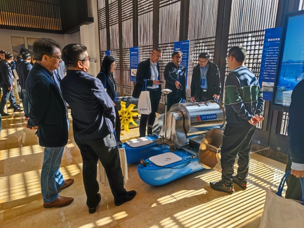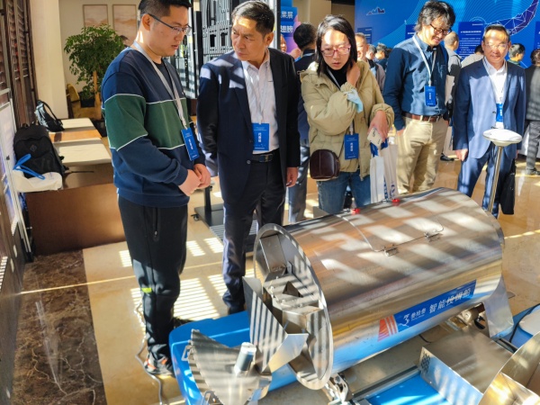 会议期间,江苏叁拾叁重点展示了自主研发设计的智能投饵船,工作人员从产品介绍、应用场景、技术储备、具体效益等多方面进行逐一解说,展示了江苏叁拾叁在现代渔业智能装备领域的创新与探索。