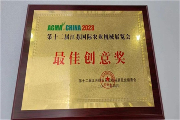 展会期间,江苏叁拾叁荣获由组委会颁发的第十二届江苏国际农业机械展览会“最佳创意奖”,有力彰显江苏叁拾叁在智能农机装备领域产品研发及生产制造的领先水平。