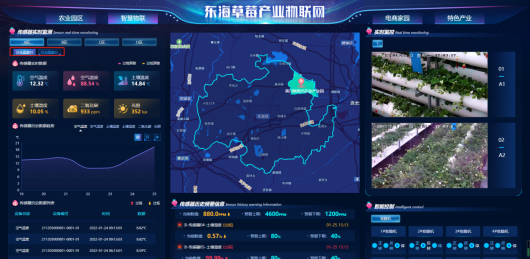 打造草莓物联网示范生产基地,通过设备智能化改造和大数据分析,给种植户提供精准科学的种植建议,根据监测信息实时推送预警信息、农技知识,可以远程控制大棚内的卷帘、补光、灌溉设备,有效减少人工成本约30%左右,有效提高草莓种植的作业效率。目前,园里果品种植全部实现智能水肥一体化、智能监控系统管理,农业物联网覆盖率达90%以上。