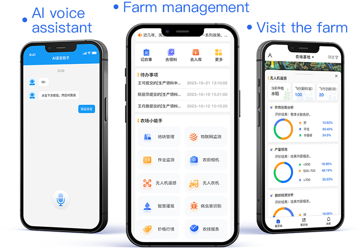 Guided by key indicators in the crop growth cycle, the system accurately manages agricultural production planning and execution, providing scientific production management solutions for farmers, farms, and agricultural enterprises. The system can also integrate IoT devices, satellite remote sensing, agricultural drones, intelligent devices, and data services into farm management, truly realizing precise agricultural management, scientific production management, connecting digital agriculture.