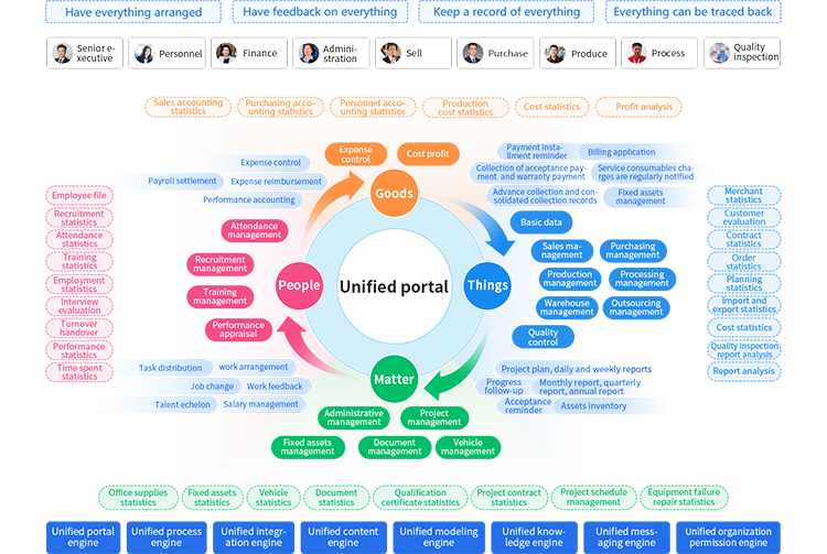 The full life cycle management system for agricultural enterprises introduces the "full life cycle management" of modern enterprise operations into the agricultural industry management center. It revolves around the four dimensions of "people, finance, materials, and affairs" of the enterprise, runs through various departments of the enterprise, and constructs an organic closed loop from personnel, administration, production, processing, procurement, sales, and other processes, truly achieving interlocking,